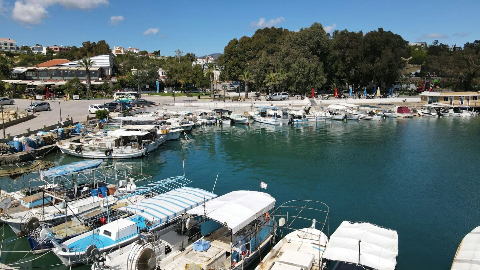 В меню часто можно встретить свежего морского окуня, дораду, кальмары, креветки и традиционные кипрские закуски мезе. Многие рестораны закупают рыбу у местных рыбаков, поэтому блюда здесь считаются особенно свежими.